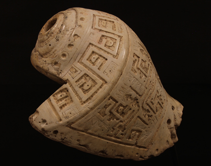 Entre éstas —si bien resulta casi imposible destacar alguna de las piezas exhibidas por la calidad y preciosismo de todas ellas— considero de significación especial un plato de piedra grabada y pulida de estilo Cupisnique (valle de Jequetepeque), fechado en la segunda mitad del segundo milenio a.C.